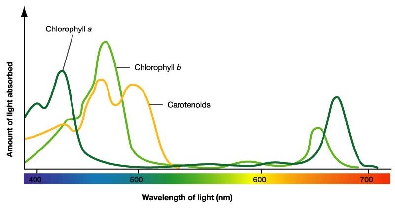 – เป็นช่วงความยาวคลื่นแสงที่ Chlorophyll a และ Chlorophyll b ดูดซึมได้ดี